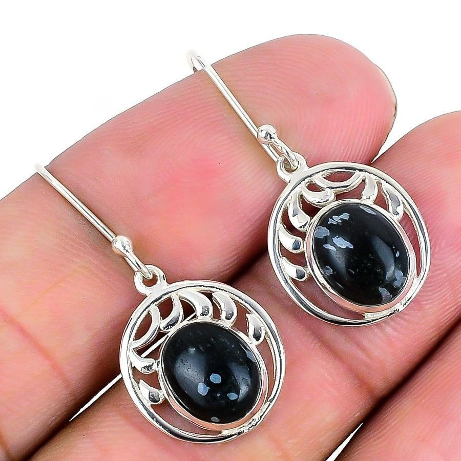 Snoflake Obsidian Stone Solid Sterling Silver Boho Dangle Drop Earrings Jewelry