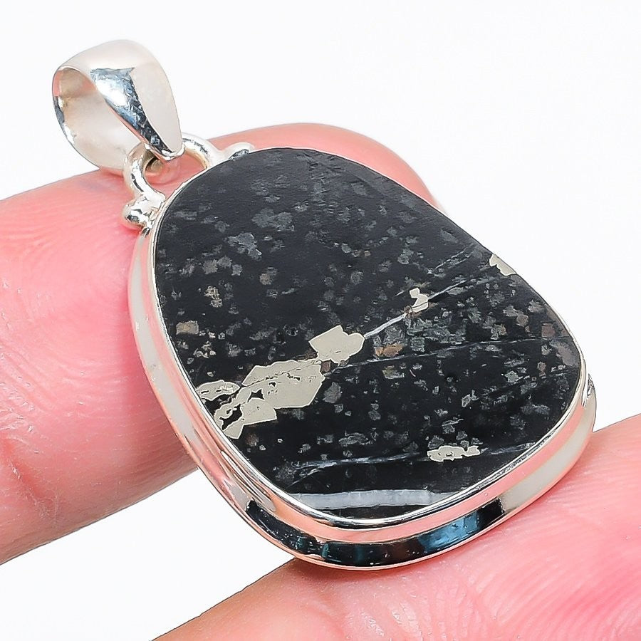 Snoflake Obsidian Stone Sterling Silver Friendship Day Sister Handmade Pendant