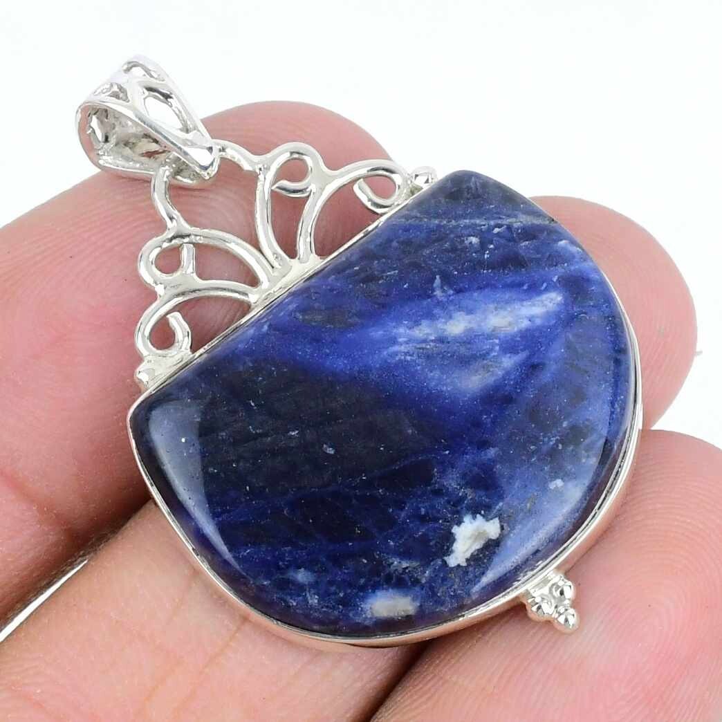 Sodalite Gemstone 925 Silver Handmade Valentines Engagement Wife Artisan Pendant