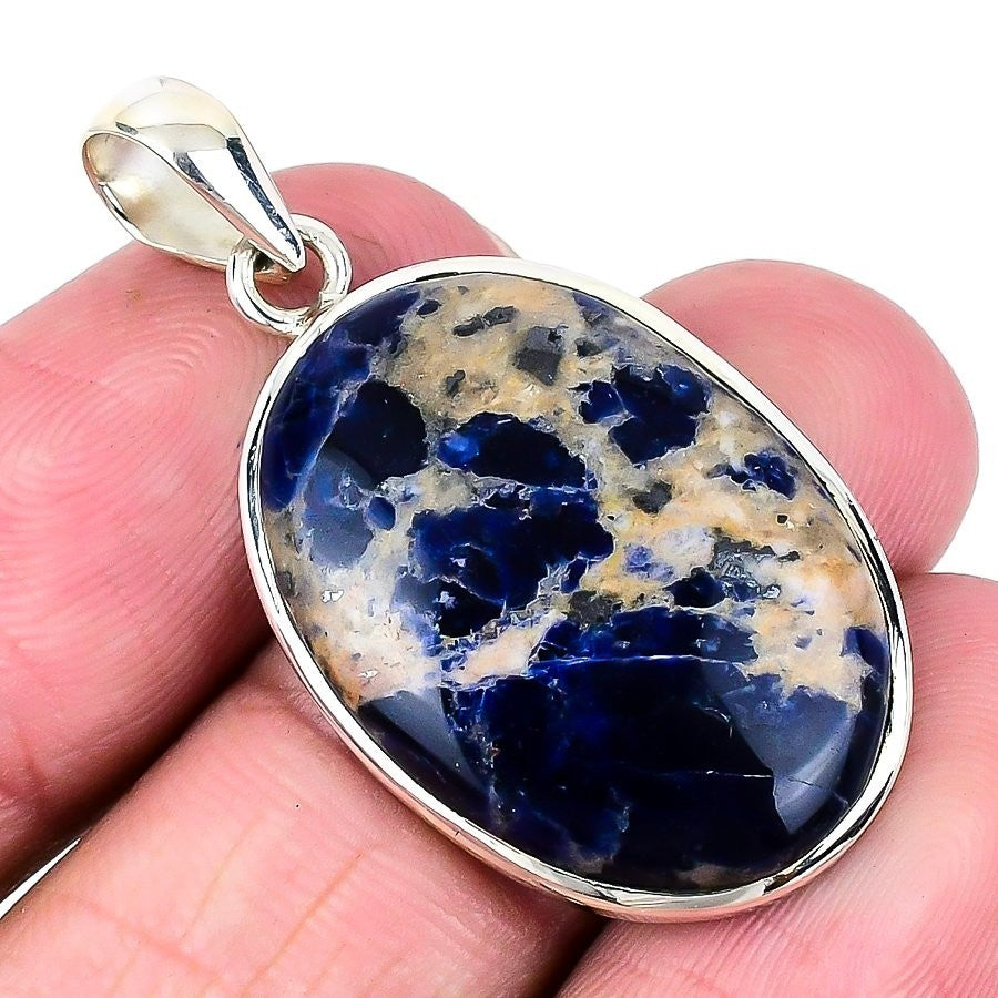 Sodalite Gemstone Solid Silver Third Eye Chakra Wife Channel Set Pendant Jewelry