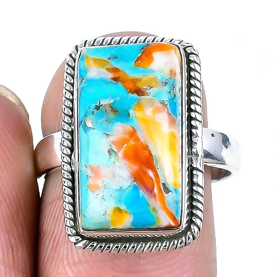 Spiny Oyster Gemstone 925 Sterling Silver Statement Trendy Ring Jewelry Size 8