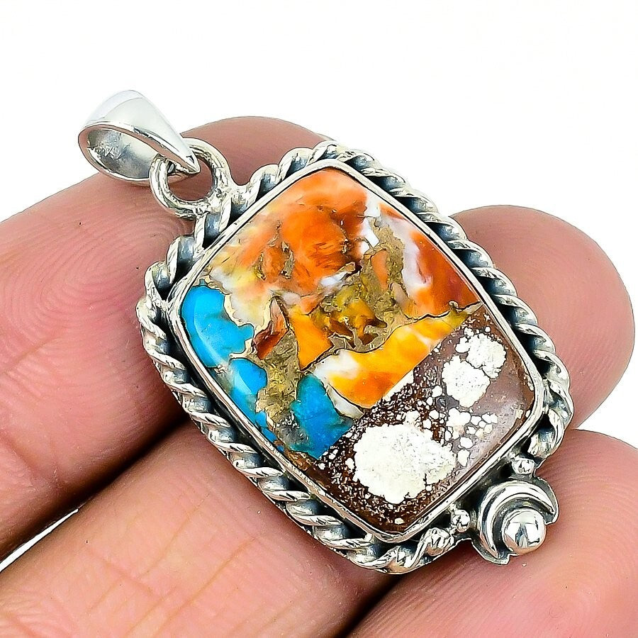 Spiny Oyster Matrix Stone Handmade Anniversary Pendant Jewelry 925 Solid Silver