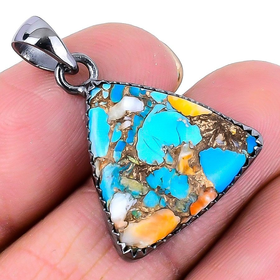 Spiny Oyster Stone Channel Set Daughters Day Mother New Pendant 925 Solid Silver