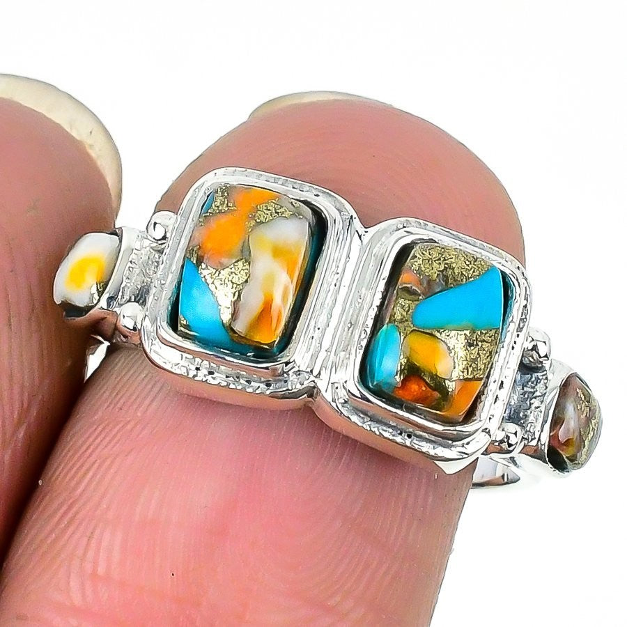 Spiny Oyster Stone Statement Best Friend Gift Ring Jewelry Size 7.5 Solid Silver