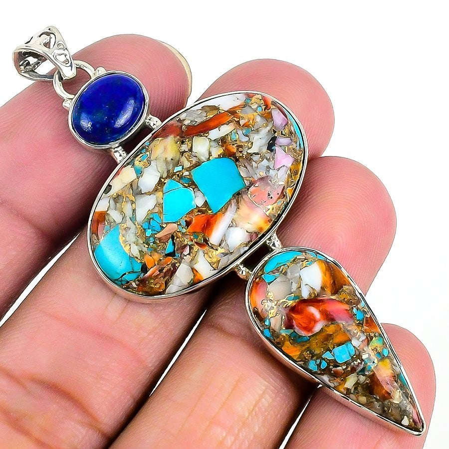 Spiny Oyster Turquoise Gemstone Ethnic New Pendant Jewelry Solid Sterling Silver