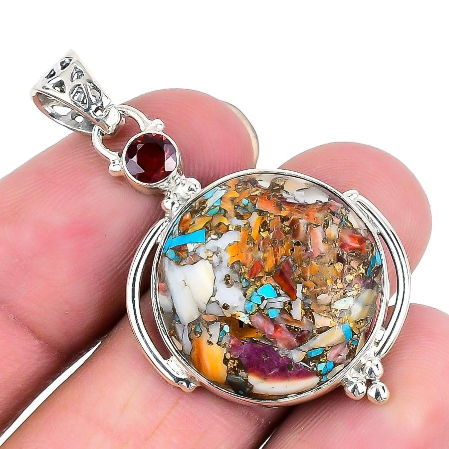 Spiny Oyster Turquoise Stone 925 Silver Bezel Daughter Handmade Wedding Pendant