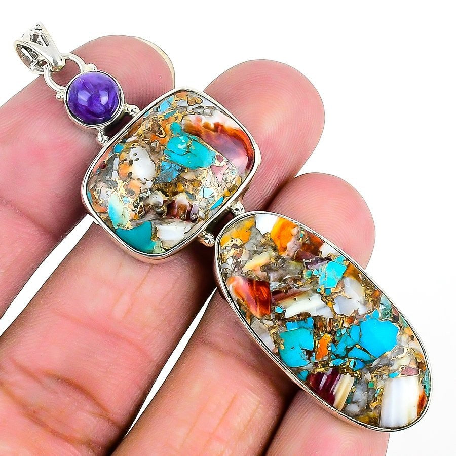 Spiny Oyster Turquoise Stone Bezel Wife Wedding Pendant Jewelry 925�Solid�Silver