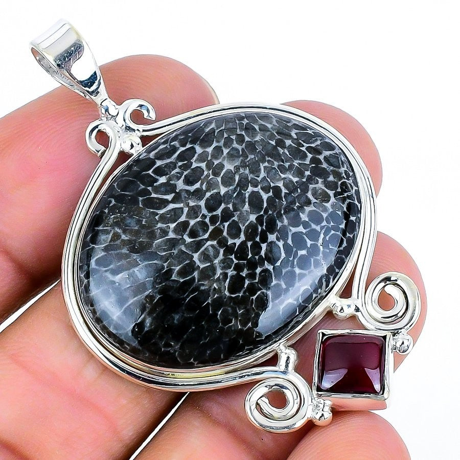 Stingray Coral Stone Root Chakra Channel Set Daughter Boho Pendant Solid Silver