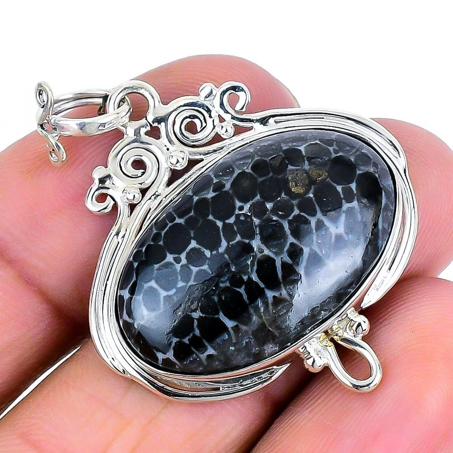 Stingray Coral Stone Solid Sterling Silver Channel Set Wife Boho Pendant Jewelry