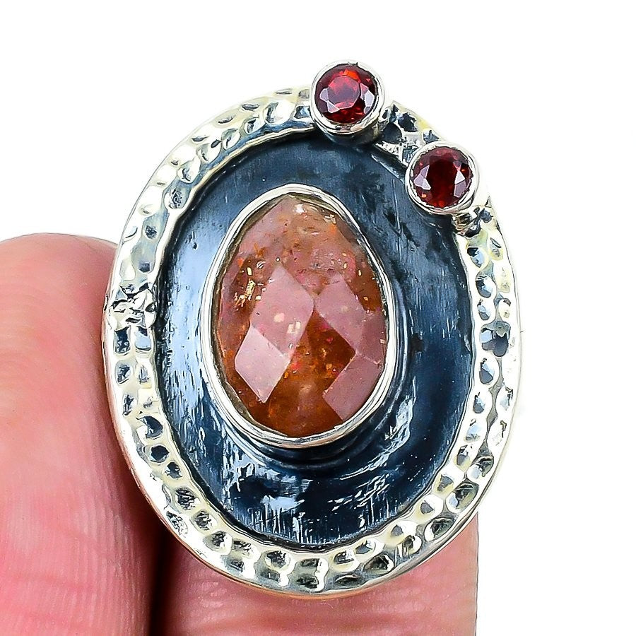 Sunstone Gemstone Solid Sterling Silver Daughter Statement New Ring Jewelry US 9