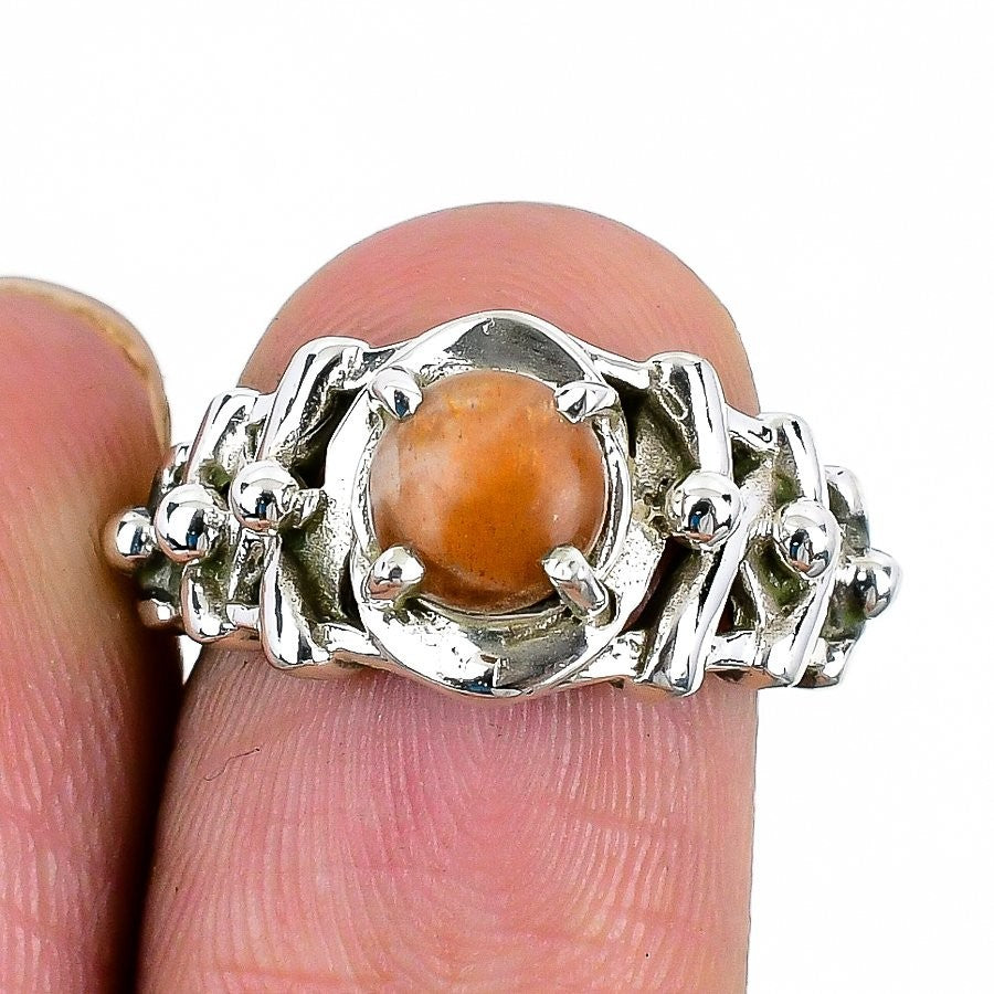 Sunstone Stone Solid Sterling Silver New Statement Birthday Ring Jewelry Size 7