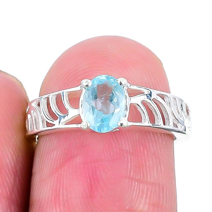 Swiss Blue Topaz Gemstone 925 Silver Daughter Cluster Boho Ring Jewelry Size 5.5
