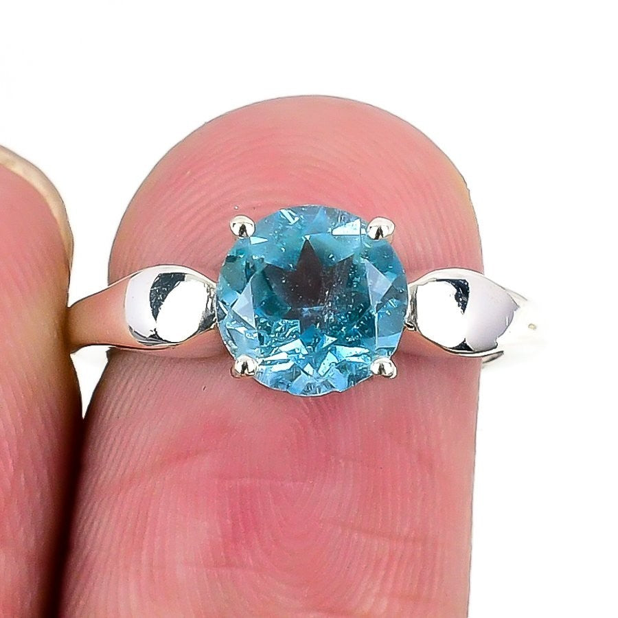 Swiss Blue Topaz Gemstone 925 Silver Elegant Statement Engagement Ring Size 6.5