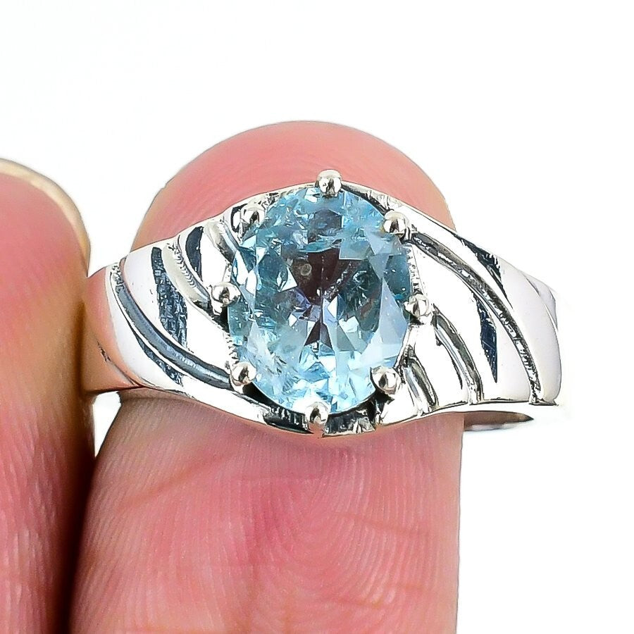 Swiss Blue Topaz Gemstone 925 Solid Silver Mothers day Statement Ring Jewelry