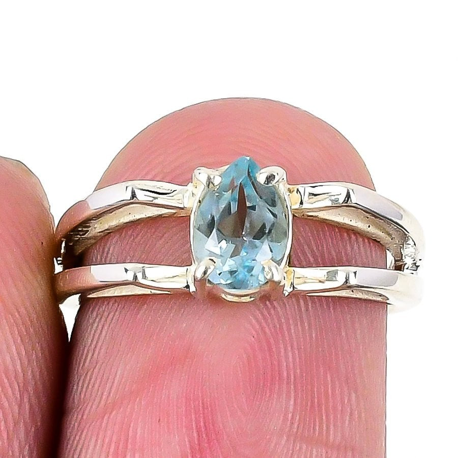 Swiss Blue Topaz Gemstone 925 Sterling Silver Engagement New Statement Ring US 6