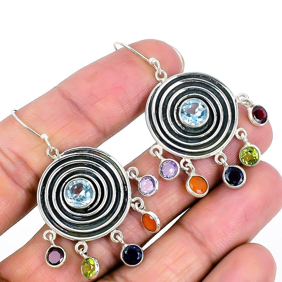 Swiss Blue Topaz Gemstone 925 Sterling Silver Handcrafted Drop Hook New Earrings