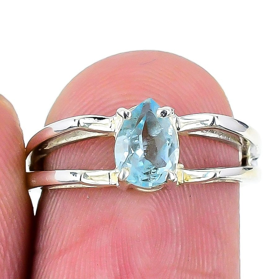 Swiss Blue Topaz Gemstone Boho Statement Ring Jewelry Solid Sterling Silver US 6