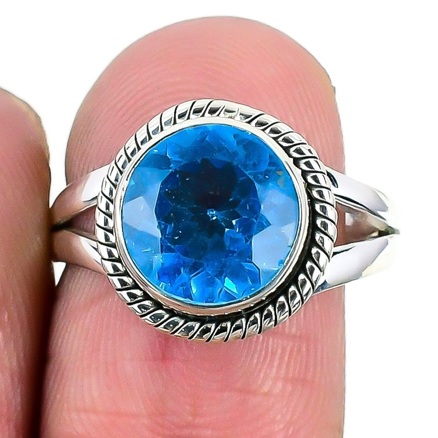 Swiss Blue Topaz Gemstone Cluster Trendy Ring Jewelry Size 8 925 Sterling Silver