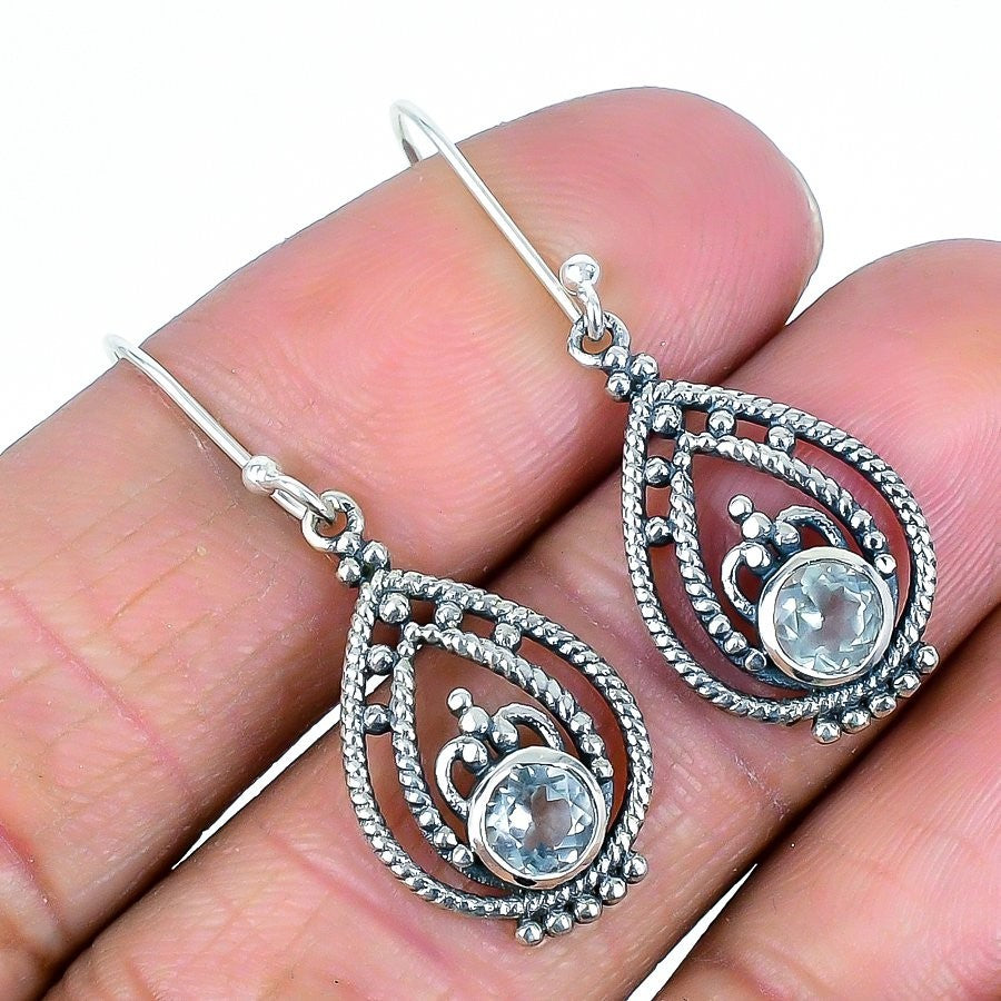 Swiss Blue Topaz Gemstone Drop Dangle Mother Unique Earrings 925 Sterling Silver