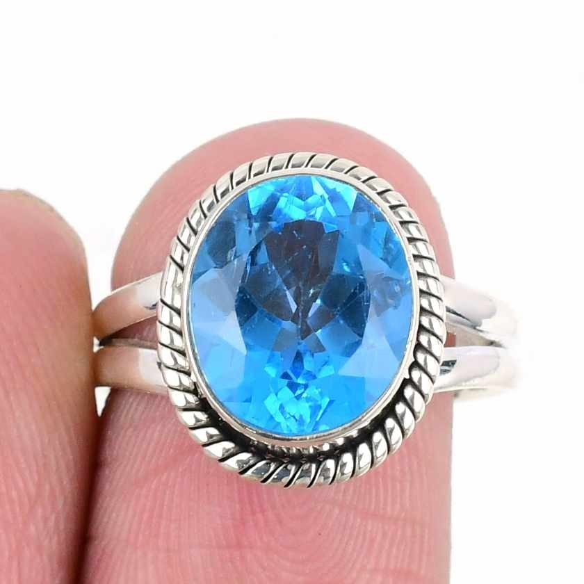Swiss Blue topaz Gemstone Engagement Cluster Unique Ring Size 8 925 Solid Silver
