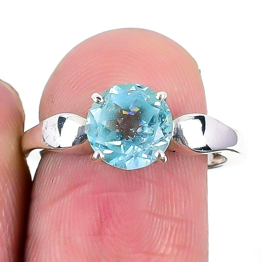 Swiss Blue Topaz Gemstone Ethnic Cluster Anniversary Ring Size 8 Solid Silver