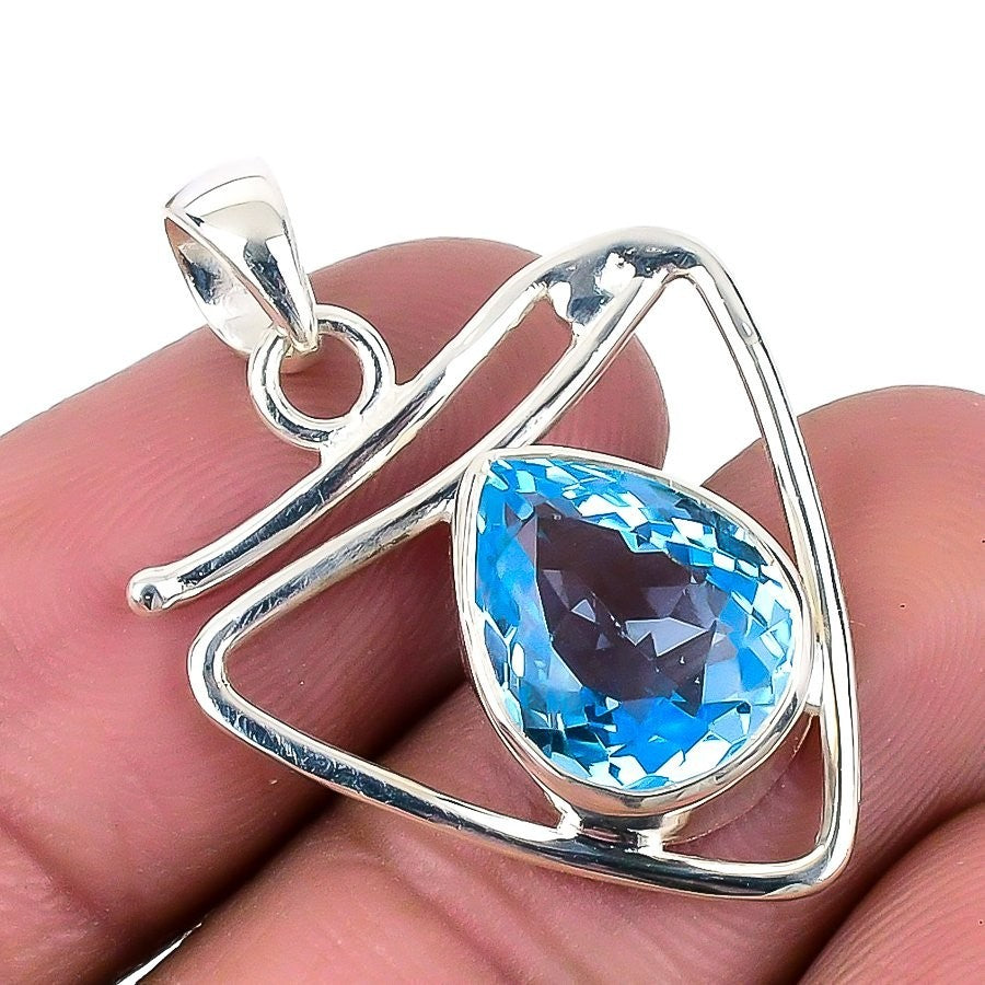Swiss Blue Topaz Gemstone Handcrafted Birthday Pendant Jewelry Sterling Silver