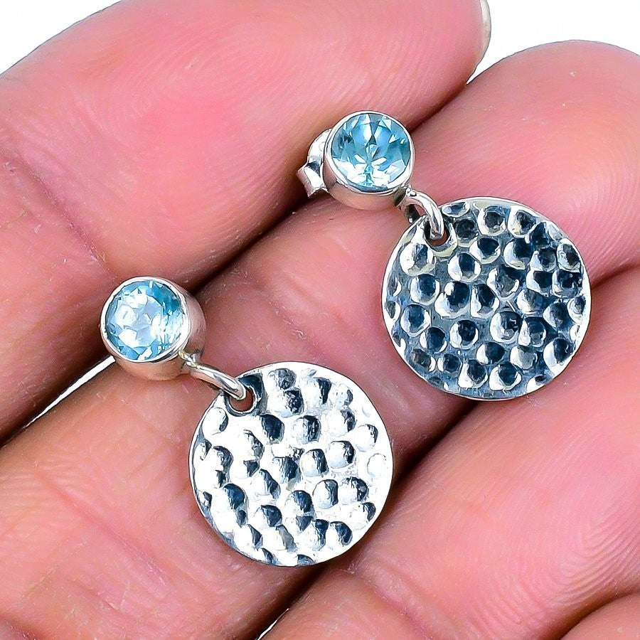 Swiss Blue Topaz Gemstone Solid Silver Anniversary Sister Stud Birthday Earrings