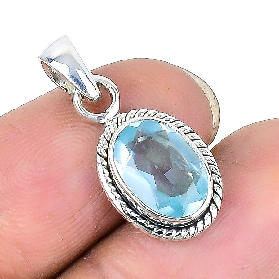 Swiss Blue Topaz Gemstone Solid Silver Birthday Anniversary Wedding Wife Pendant