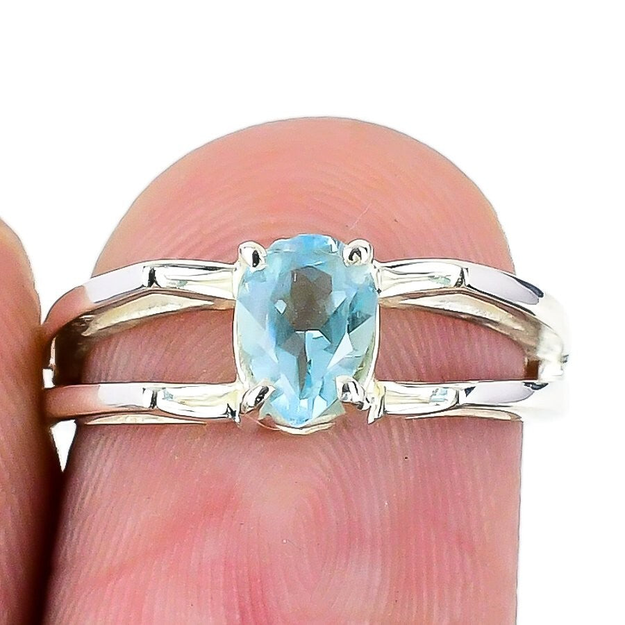 Swiss Blue Topaz Gemstone Solid Silver Birthday Statement Ring Jewelry Size 6