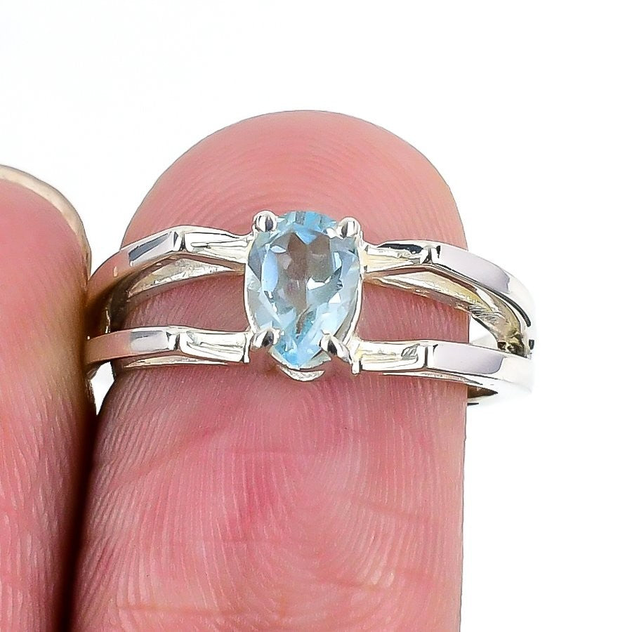 Swiss Blue Topaz Gemstone Solid Silver Statement Daughter Boho Ring Jewelry US 7