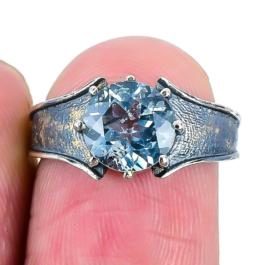 Swiss Blue Topaz Gemstone Sterling Silver Cluster Best Sisters Gift Ring Size 6