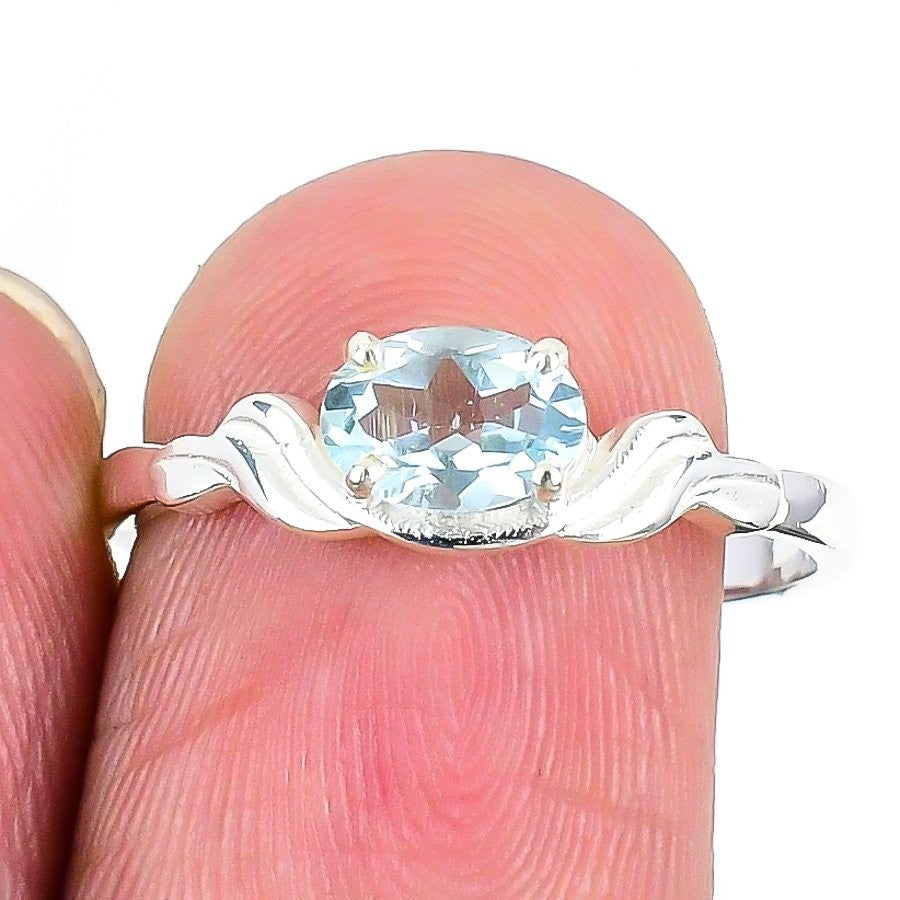 Swiss Blue Topaz Stone 925 Silver Bezel Statement Trendy Art Deco Handmade Ring