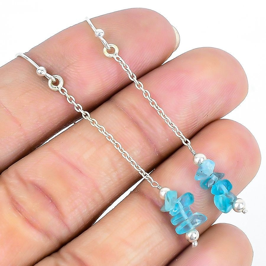 Swiss Blue Topaz Stone 925 Sterling Silver Trendy Dangle Drop Unique Earrings