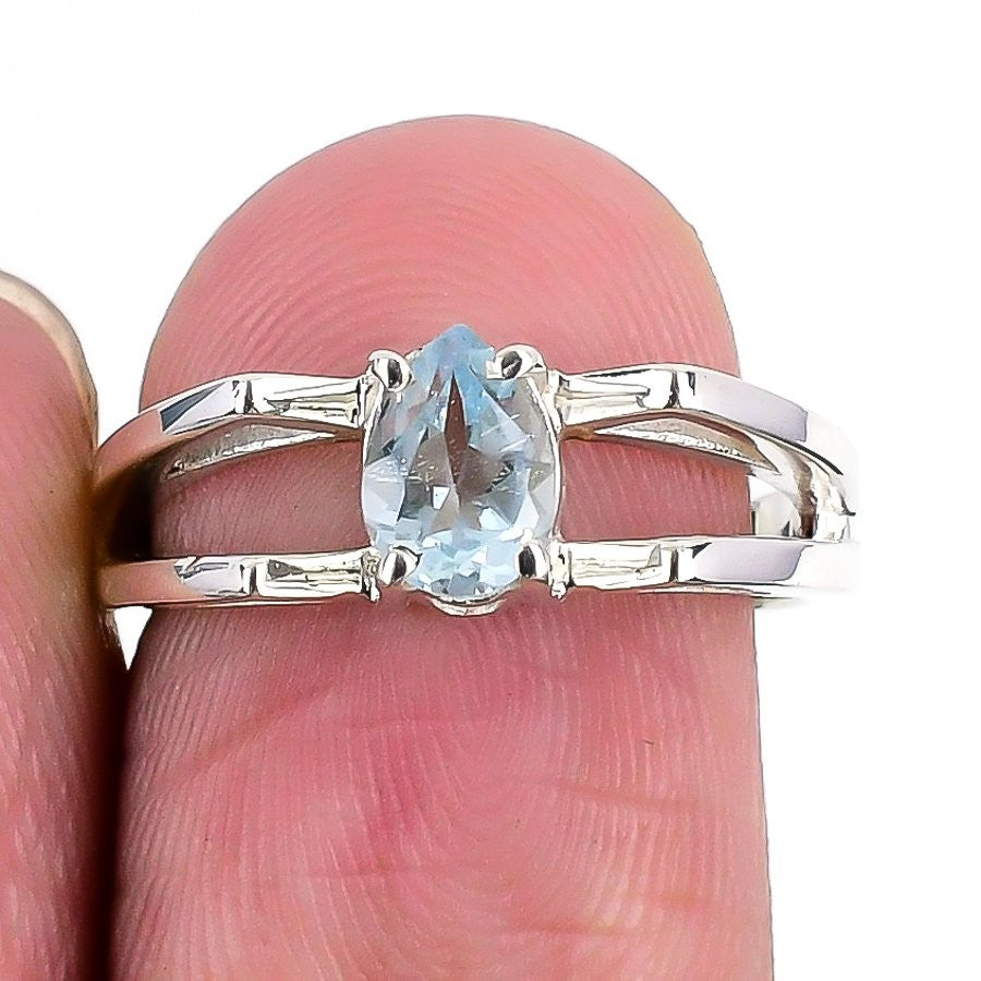 Swiss Blue Topaz Stone Bezel Statement Engagement Ring Jewelry Size 7 925 Silver