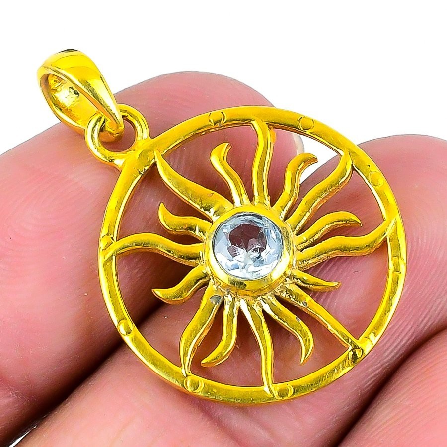 Swiss Blue Topaz Stone Handcrafted Trendy Art Deco Boho Pendant 925 Solid Silver