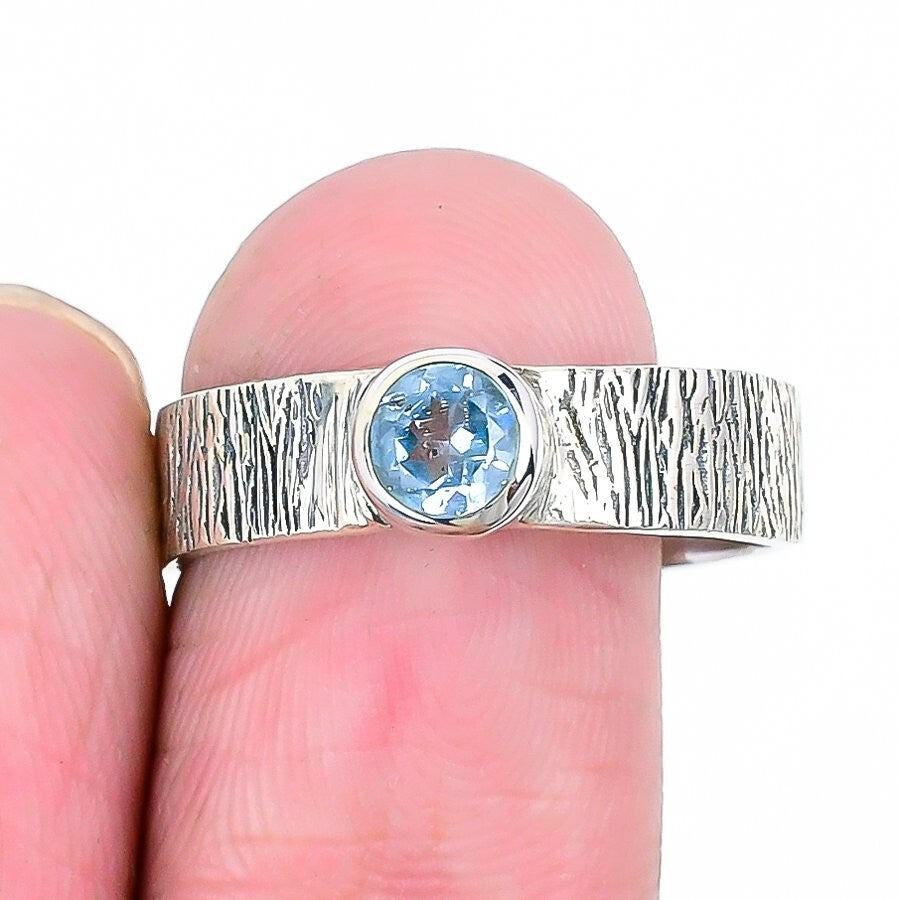 Elegant Swiss Blue Topaz Stone Solid Silver Anniversary in 9