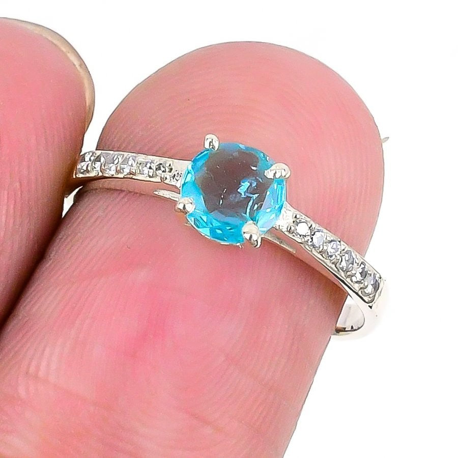 Elegant Swiss Blue Topaz Stone Solid Silver Handcrafted in 9