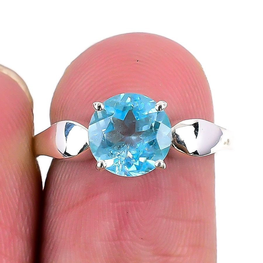 Swiss Blue Topaz Stone Solid Silver Statement Daughter Gift Ring Jewelry US 5.5