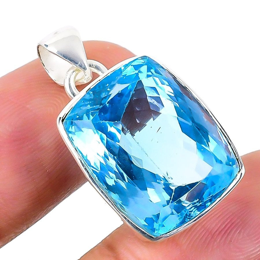Swiss Blue Topaz Stone Solid Sterling Silver Anniversary Unique Pendant Jewelry
