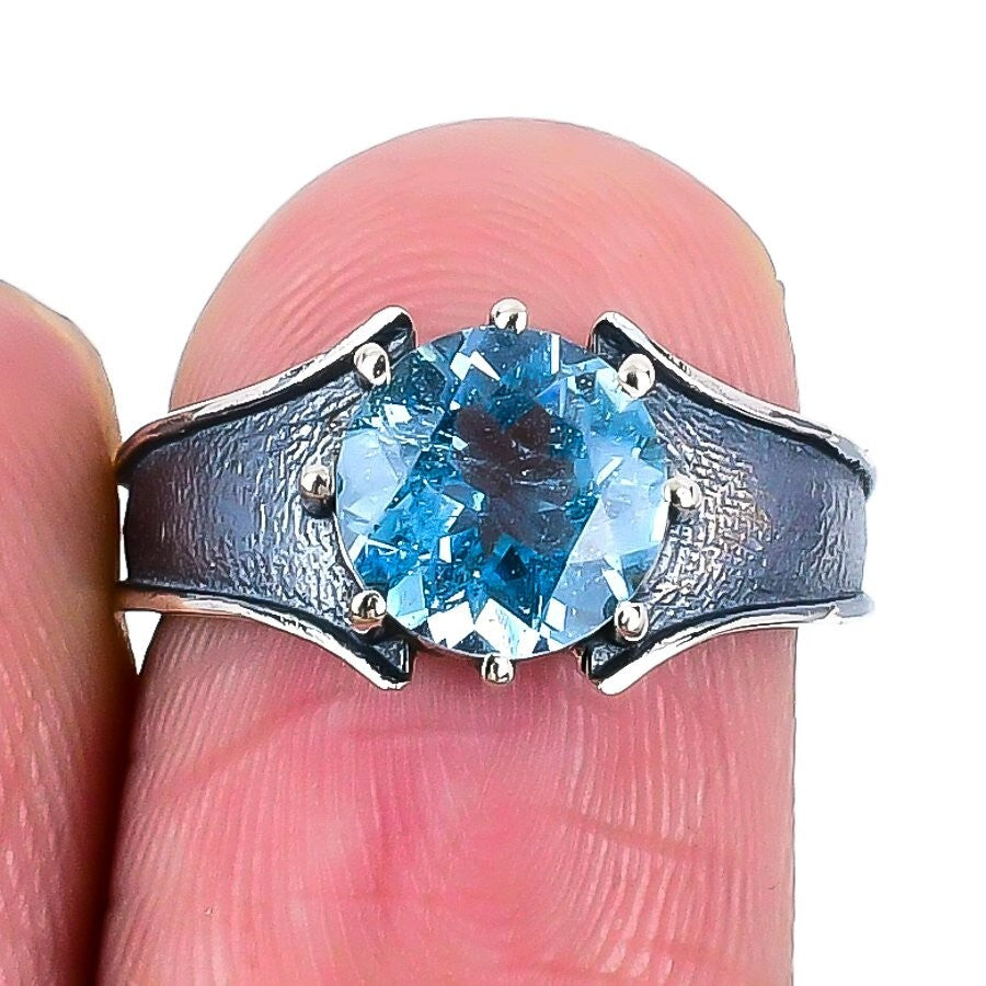 Swiss Blue Topaz Stone Trendy Ethnic Cluster Ring Jewelry Size 6 Sterling Silver