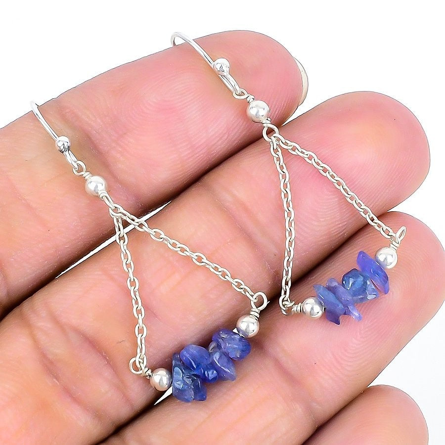 Tanzanite Quartz Druzy Stone Solid Sterling Silver Drop Dangle Earrings Jewelry