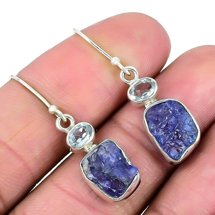 Tanzanite Stone Solid Silver Wedding Wife Handcrafted Dangling Earrings Jewelry