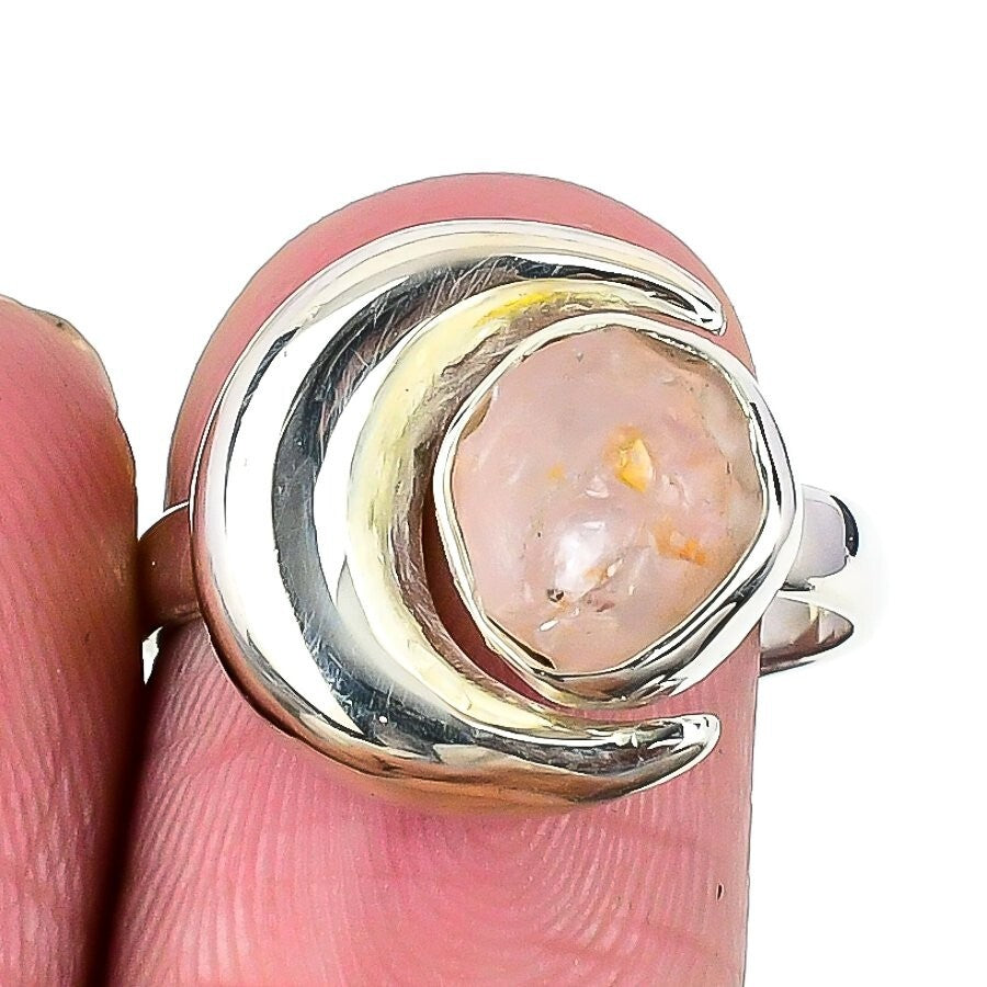Thanks Giving Day Sale Rose Quartz Stone 925 Solid Silver Statement Ring Jewelry