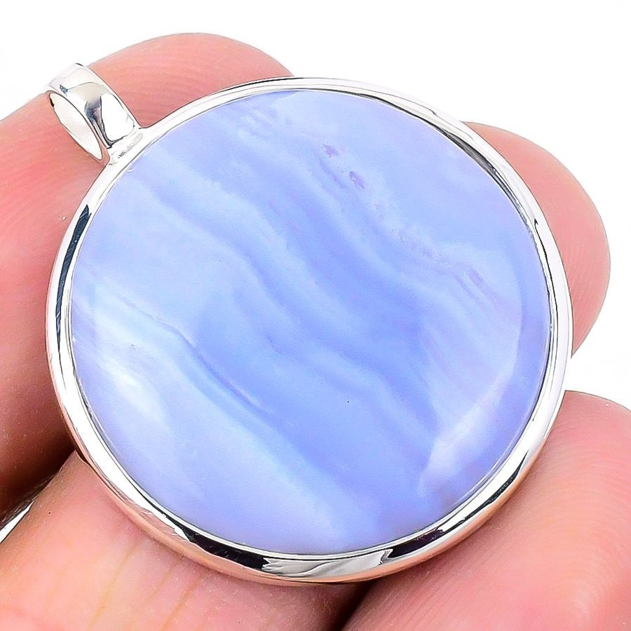 Third Eye Chakra Blue Lace Agate Gemstone Elegant Wife Pendant 925 Solid Silver