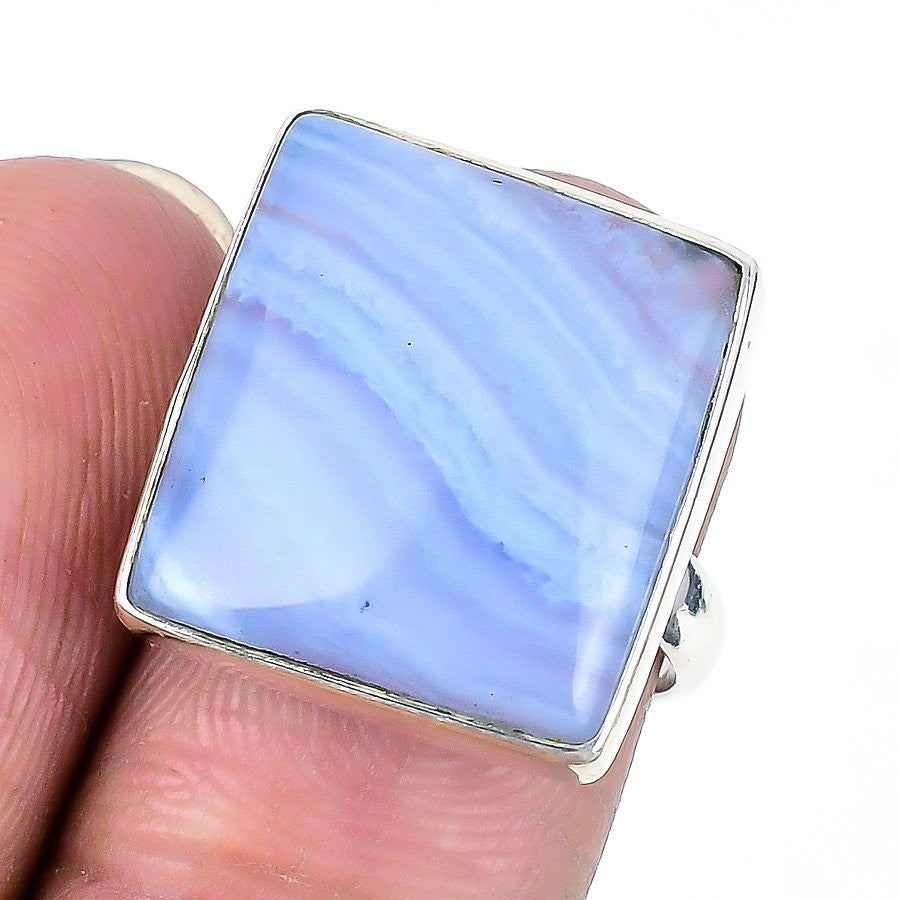 Third Eye Chakra Blue Lace Agate Stone 925 Silver Statement Ring Jewelry US 7