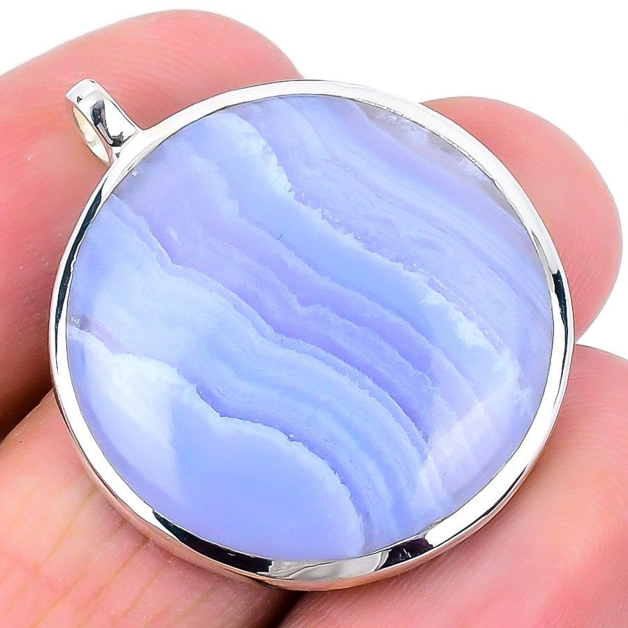 Third Eye Chakra Blue Lace Agate Stone Handcrafted Pendant Solid Sterling Silver