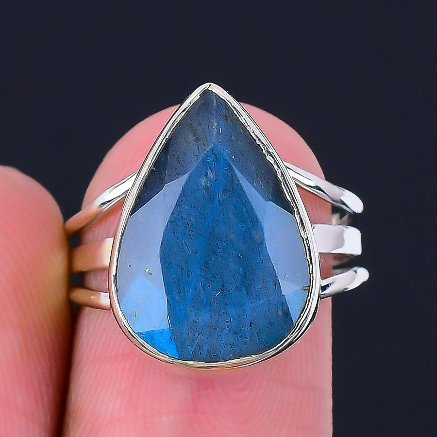 Third Eye Chakra Labradorite Gemstone Statement Sister Ring Sterling Silver US 7