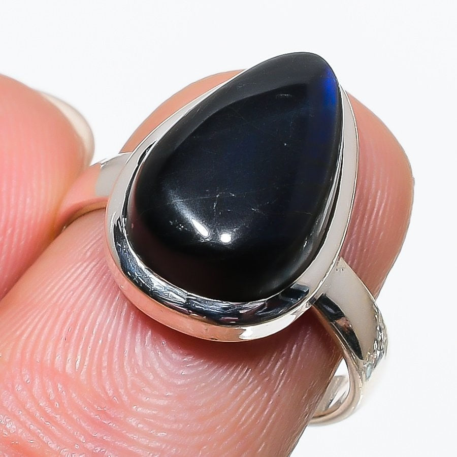 Third Eye Chakra Labradorite Stone 925 Silver Anniversary Cluster Ring Size 7