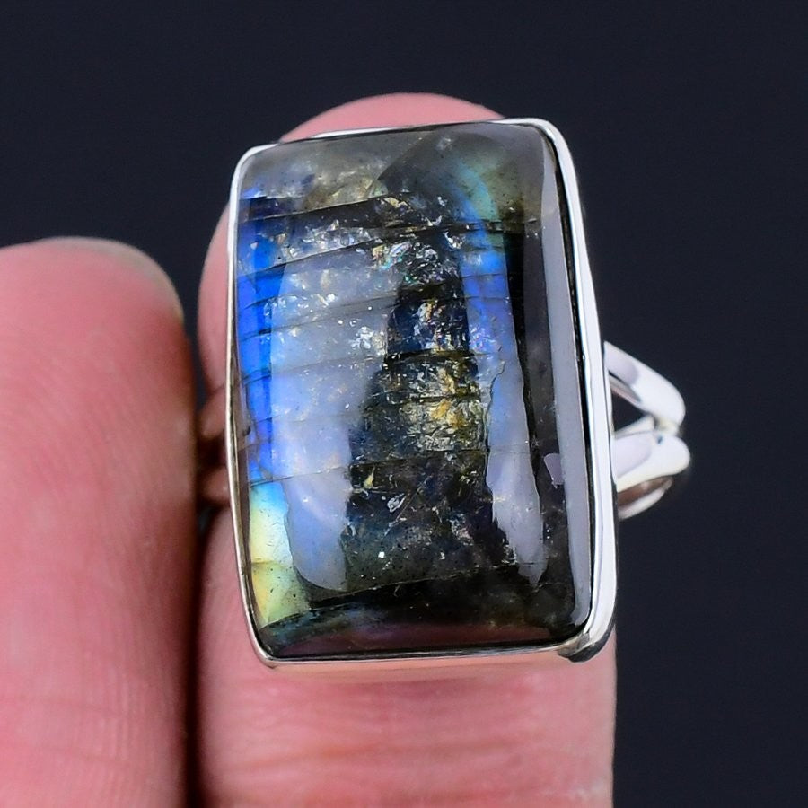 Third Eye Chakra Labradorite Stone Solid Silver Cluster Sister New Ring Size 9