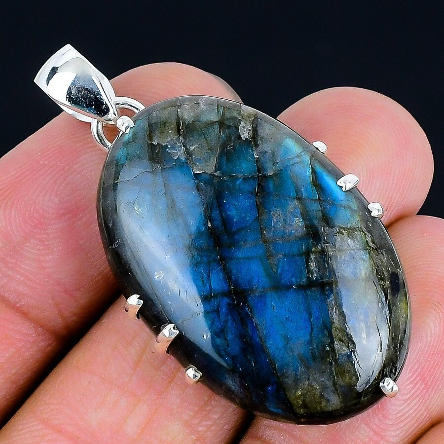 Third Eye Chakra Labradorite Stone Wife Engagement Pendant 925 Sterling Silver